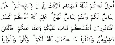 قال الله تعالي أحل لكم ليلة الصيام الرفث الي نسائكم كتاب الله طريقك الي الجنة